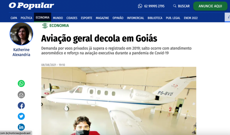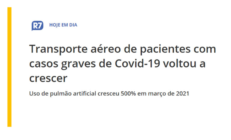 Transporte aéreo de pacientes com casos graves de Covid-19 voltou ao crescer, registra Brasil Vida
